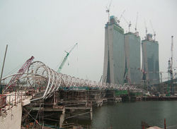 The building of a landmark Bridge at Marina Bay was first announced in March 2006. The bridge will link the Bayfront area to Marina Centre, completing a walking route that brings visitors to the major attractions around the bay and is envisaged to be a destination point by itself- a place for visitors to enjoy and catch a panoramic view of the Singapore city skyline.